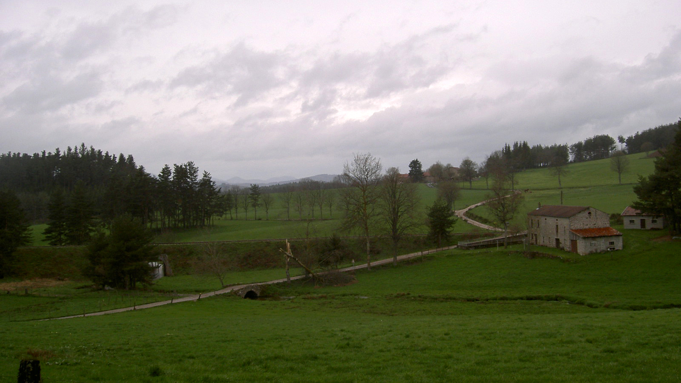 Nach langem Weg durch den Wald hinaus ins Freie. Der Regen peitscht von vorne, ich werde durch und durch nass. In Les Setoux kleine Kirche, Gottesdienst. Ich setze mich still dazu. Nachher wünschen mir die 4 teilnehmenden Frauen “Bonne marche”.