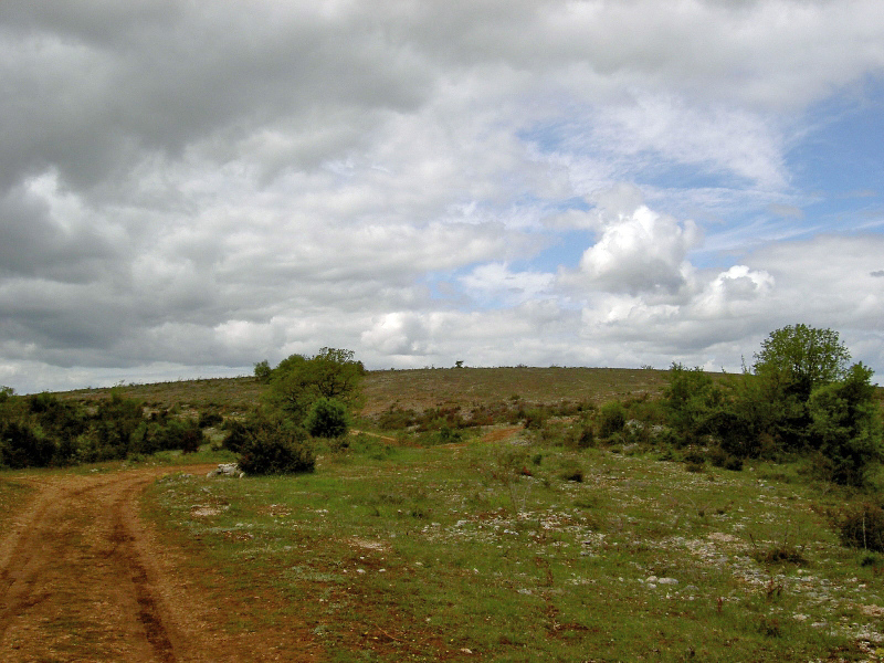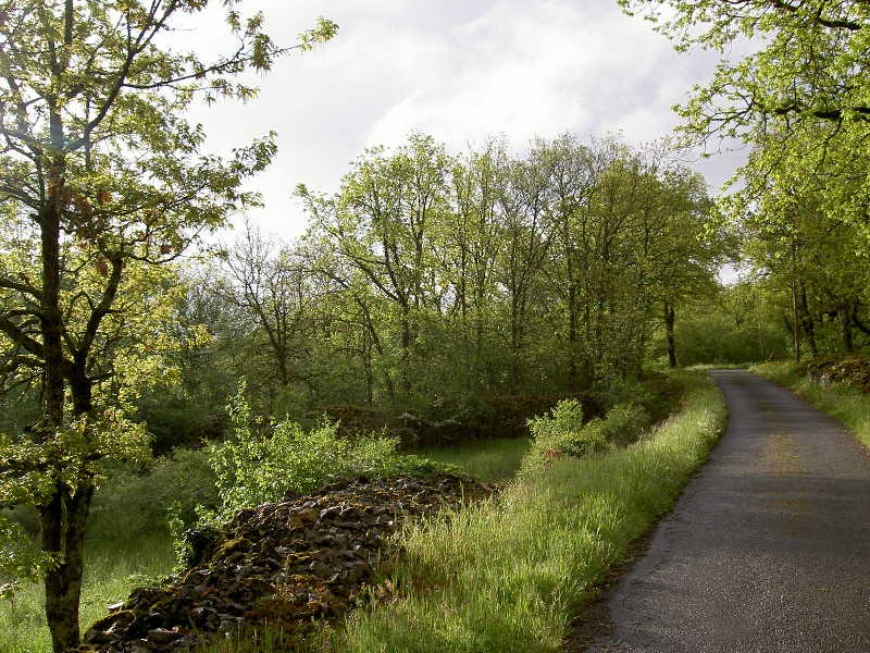 Weiter auf nichtssagendem Weg nach Grealou, überhole dabei mehrere Pilger. Bin immer noch schwach. Gucke müde immer auf den Boden, verpasse deshalb Abzweig und gehe einfach die Straße weiter, ist eh kürzer. In solchen Fällen bewährt sich eine Karte auf der ansonst sehr gut markierten Strecke. 80 m Anstieg erscheinen mir endlos. Liegts daran, dass es plötzlich warm wird?