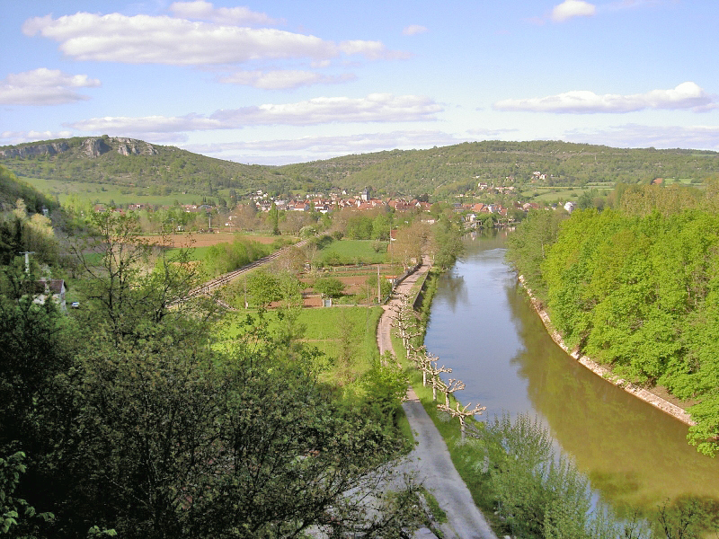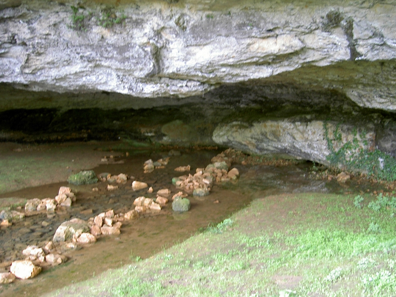 Schotterabstieg steil hinunter nach Cajarc, den Abstecher zu einer mannshohen Felsenquelle leiste ich mir, schön kühl!
