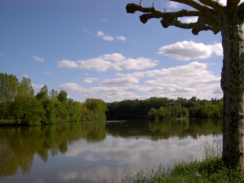 Großes Gaststättenzimmer direkt an der Brücke über den Lot, 3 Bier in belebter Bar, Tagebuch. Abendspaziergang 2 km zur Chapellette, Cajarc unter mir, ein Weg, den ich morgen auch gehen muss. Entspanntes Sitzen am Ufer des Lot unter Platanen, Abendsonne, Heimtelefonat mit Flo und Beni.
