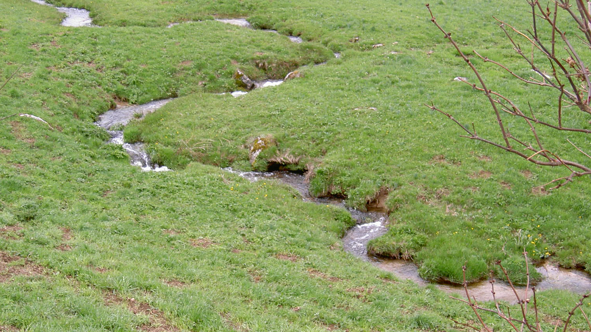 Wunderschöner Weg hinunter nach St.Alban, über breite, frei mäandernde Wasserläufe.