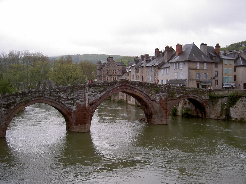 Weiter über die regennasse Straße entlang dem reißenden Lot nach Espalion mit seiner mittelalterlichen Pilgerbrücke. Im Hotel: die vier Franken. Wir sitzen beim Essen nebeneinander und haben einen unterhaltsamen Abend.