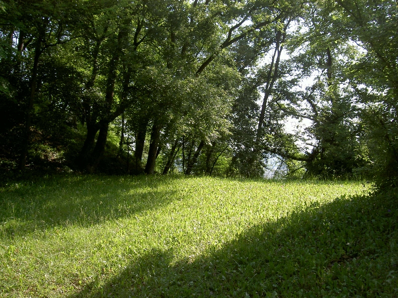 In Argagnon kleine Kirche mit wunderbarer Akustik, dann fast unsichtbarer Wiesenpfad. Sumpfiges Froschgequake in einem Seitenarm der Gave. Nach sonnigfrischer Talquerung langer schöner Waldanstieg nach Notre Dame de Muret; ich erwarte eine Kapelle, ist aber nur ein kitschiges Marterl, aber auf zauberhafter Waldlichtung. Also Laudate im Freien.
