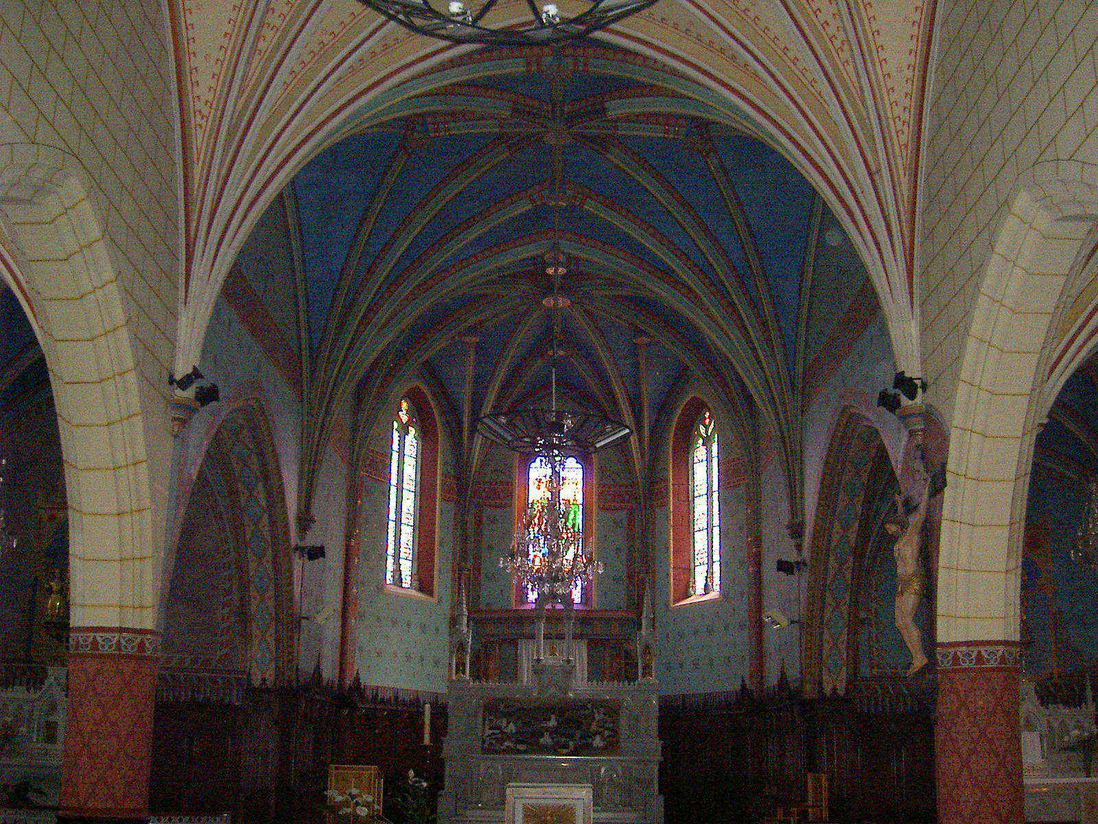 Viel rauf und runter, teilweise immer noch nahezu unbegehbare Wegstücke , aber landschaftlich bezaubernd nach Sauvlade, die Füsse werden deutlich besser, kräftige Kirche mit 3 Apsiden, Gottesdienst. Hier will ich unbedingt singen. Nehme am Gottesdienst teil bis er vorbei ist und alle Leute draußen sind. Laudate . Hinter der Kirche kleine Bewirtung, 2 Panachees, Käse und Brot aus dem Rucksack, belgischer Pilger mir gegenüber. Wir unterhalten uns ein wenig.