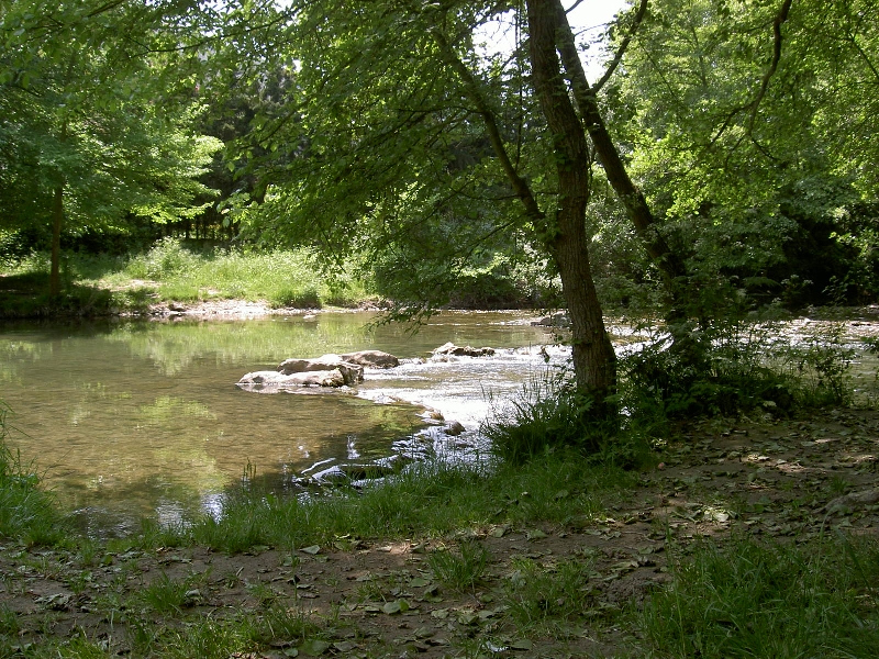 Brot, Käse, Wein, Wasser schmecken köstlich (mein Mittagstisch ist ziemlich eintönig, schmeckt mir aber immer wieder), Hundchen scheint das zu merken, erhebt sich und kommt vorsichtig näher. “NO!” Jetzt sucht er in der Wiese nach Essbarem; ich habe ein schlechtes Gewissen, dass ich Hundchen hungern lasse, will ihm aber nichts geben, da ich ihn sonst nicht mehr los werde.