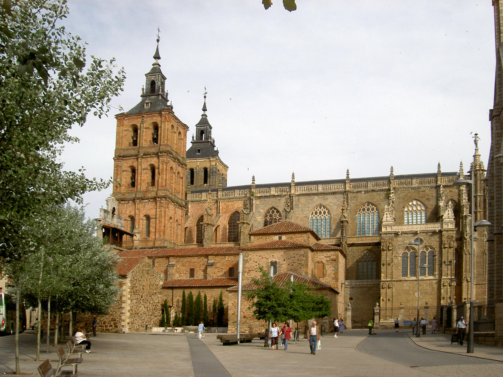 Steil auf und Ab (endlich wieder!). An Pausenplatz toller Blick über Azurga mit seiner Kathedrale. Steil runter auf grob ausgewaschenem, breit ausuferndem Schotterweg. Entsprechend steil wieder hinauf in die Altstadt. Sms von Herrmann, dass ich ja nun schon die Kirchen halb Europas besungen hätte. Macht mir Mut für Astorga. Vorbei an Gaudis Bischofpalast zur Kathedrale. Messe, nehme teil, dann, trotz vieler Touristen: Laudate . Ich lern’s schon noch, mich zu trauen.