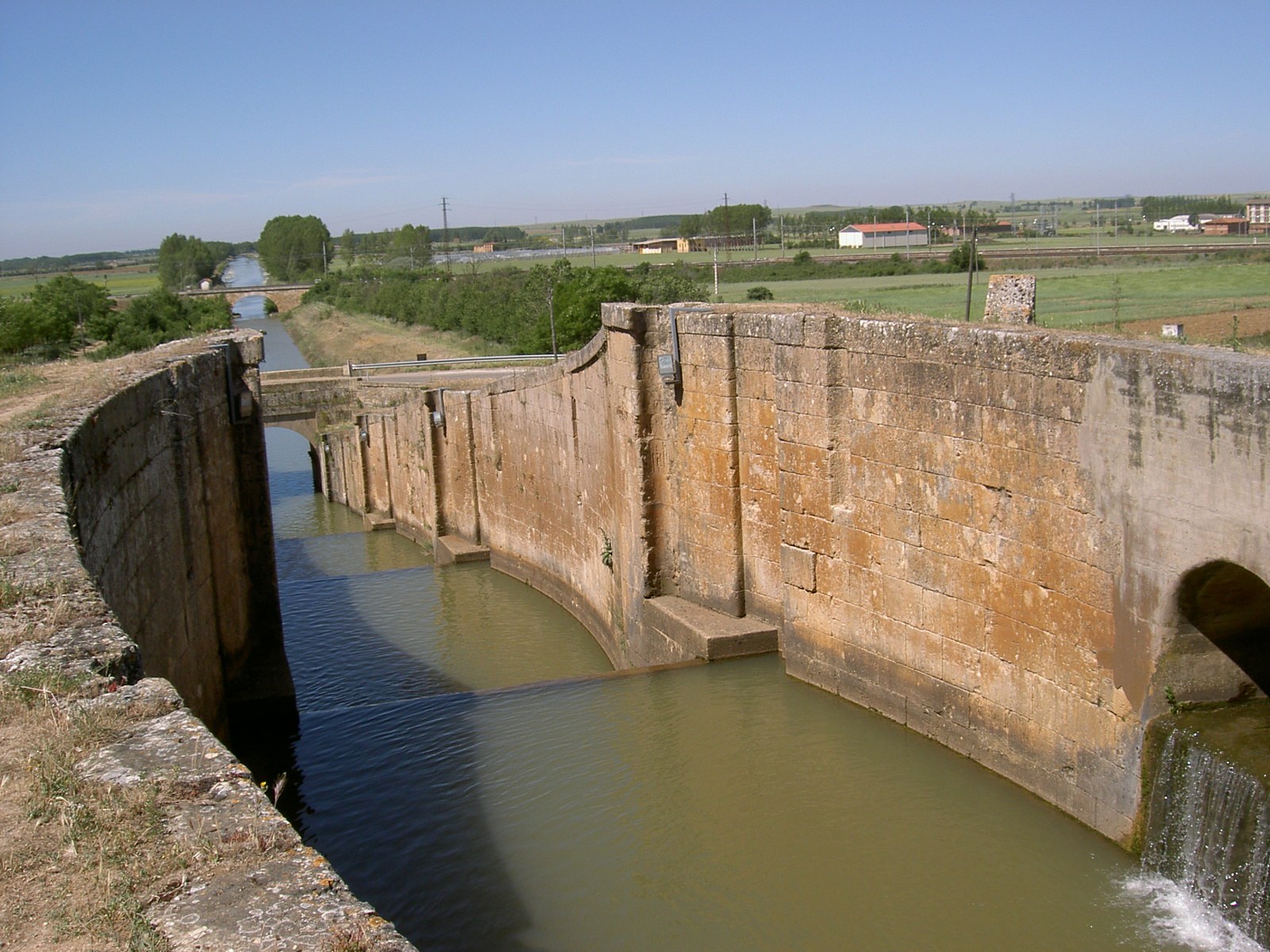 Am Ortseingang elegant geschwungene, den Körpern der Schiffe nachgeformte alte Schleuse. Heute dient der Kanal nur noch zur Bewässerung. Einkaufen. Wasser nachfüllen.