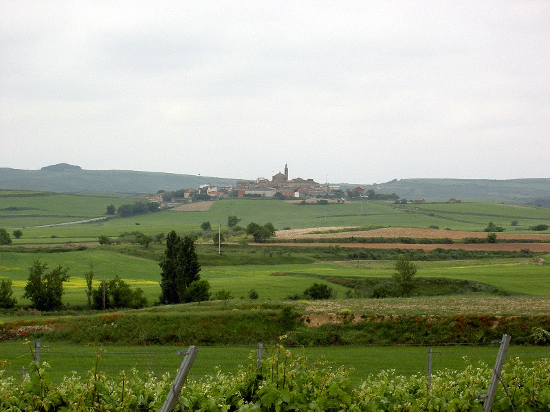 Los Arcos ist hübsch. Am Ortsausgang kreuzen Schafe. Dann lange, schnurgerade Piste. Stumpfsinniges Vorsichhinlaufen, irgendwann muss auch das enden (daß es Tage später noch heftiger würde, wusste ich da noch nicht). Die Zeit scheint stillzustehen. Punktförmige Pilger weiter vorne scheinen sich überhaupt nicht zu bewegen. Auf einem Hügel El Busto.