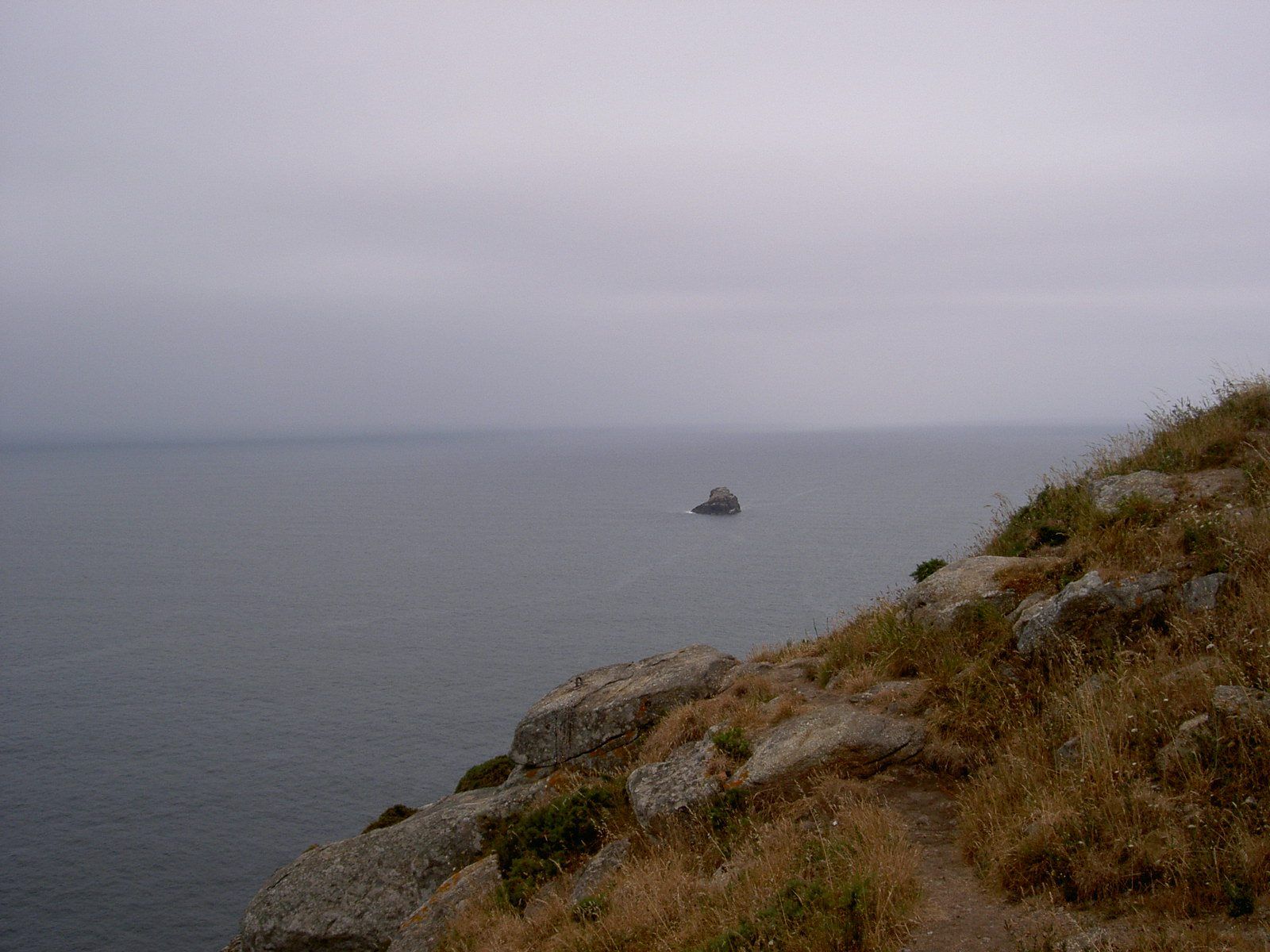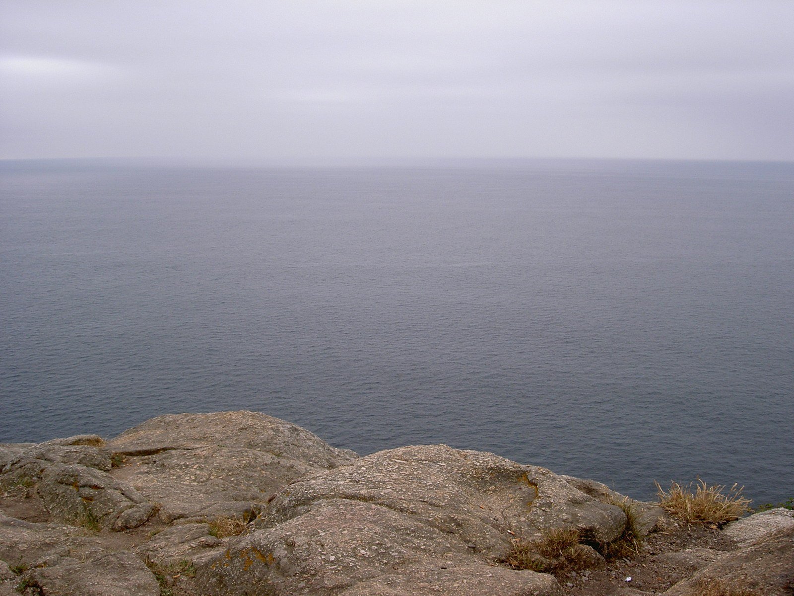 Über heiße Landstraße den Rücken auf der Halbinsel hoch, dann auf Pfaden weiter bis Fisterra, zwischendurch nochmal Pause auf kleinem Steinwall im Wald. Belohnungseis am Strand. Als ich die ersten Häuser von Fisterra erreiche, legt meine körpereigene Software den Schalter um: so, jetzt reichts, weiter mag ich nicht gehen, jetzt hab ich keine Lust mehr. In den zurückliegenden 80 Tagen war mir dieser Gedanke: aufzuhören, nicht ein einziges mal gekommen.