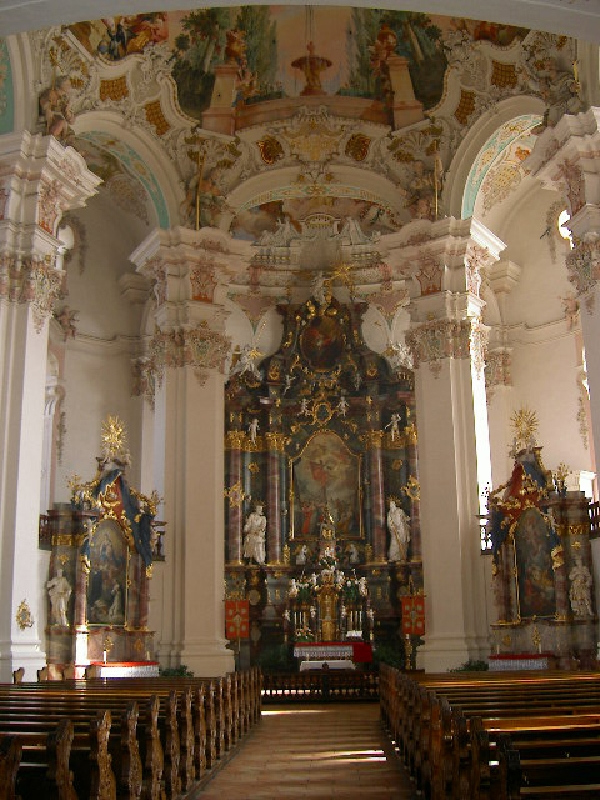Die letzten Kilometer sind wieder so elend mühsam; Beine und Füße tun furchtbar weh, ich bin total erschöpft; wenn das so weiter geht, wird’s kritisch. In Bad Waldsee zum Trost schön großes Eis. Schönes Zimmer, Gasthof zum Kreuz, unterhalb der barocken Kirche. Ich ziehe meine Schuhe aus: Blasenansätze an den Ballen der großen Zehen und an der rechten Ferse. Hab ich noch nie gehabt; da muss ich was tun. Nach einem ruhigen Abendessen (2 Bier, sehr gute Kässpätzle) gehe ich schlafen. Nachts wache ich mit Panik auf und beschließe, mein Gepäck radikal zu reduzieren. Am nächsten Morgen lasse ich 2 Säcke im Gasthof zurück und bitte Flo, sie abzuholen und zu wiegen. Fast 3 Kg. Das merke ich in den nächsten Tagen deutlich. Beschwerden werden weniger, die Blasenansätze verschwinden ganz.