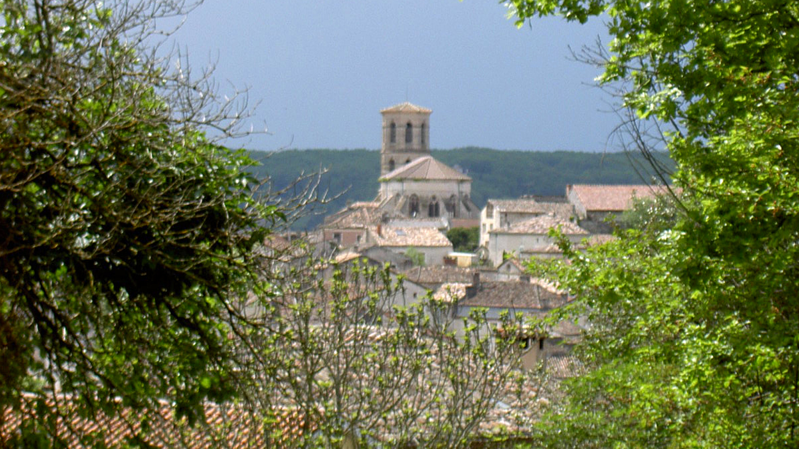 Mitten im Gelände kleine Chapelle St.Jean le Froid: Laudate klingt wunderbar. Dann langer, heißer, gewitterkündender Höhenweg nach Montcuq. Der erste Blick von oben auf die über dem Dorf thronende Kirche ist beeindruckend.